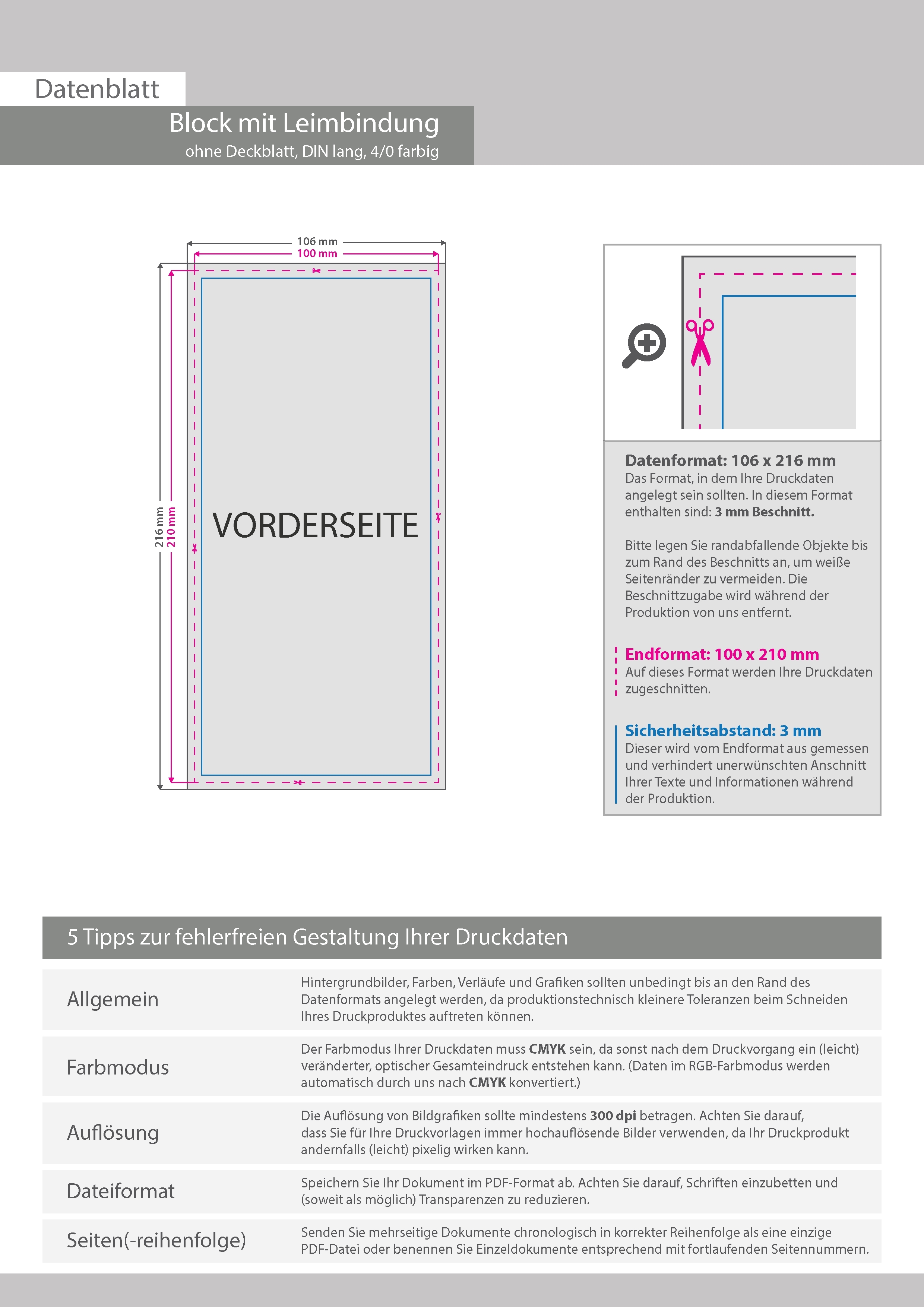 Block mit Leimbindung, DIN lang, 100 Blatt, 4/0 farbig einseitig bedruckt
