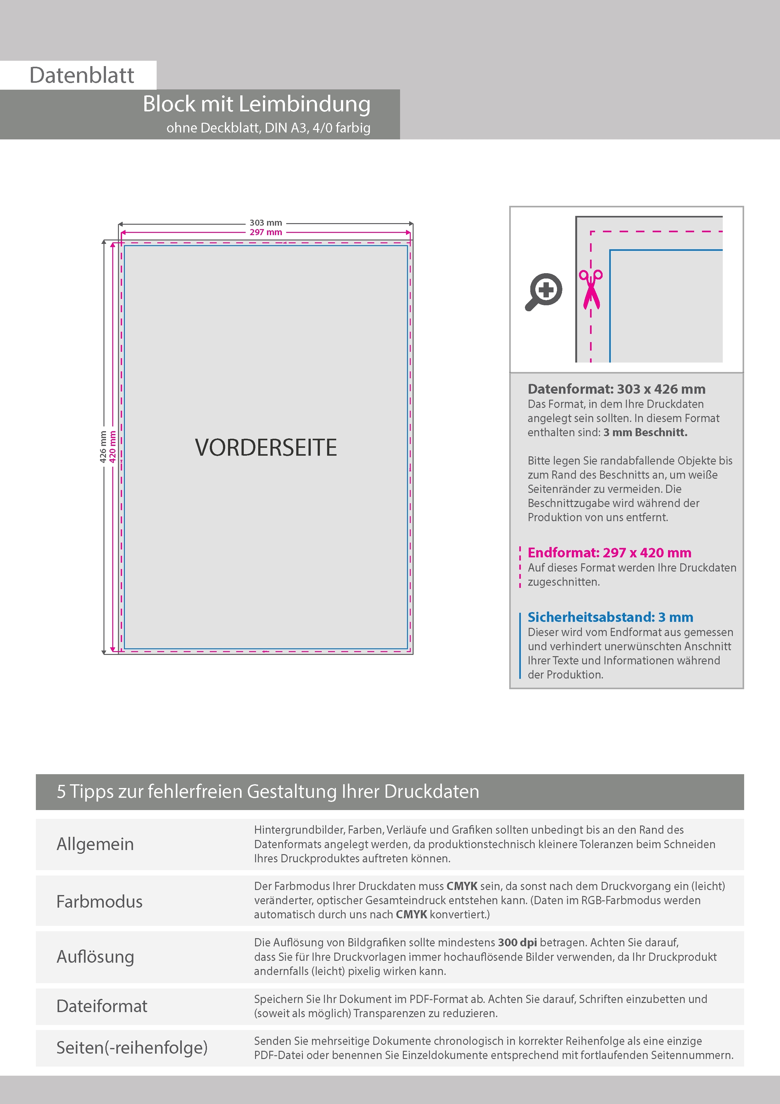 Block mit Leimbindung, DIN A3, 200 Blatt, 4/0 farbig einseitig bedruckt