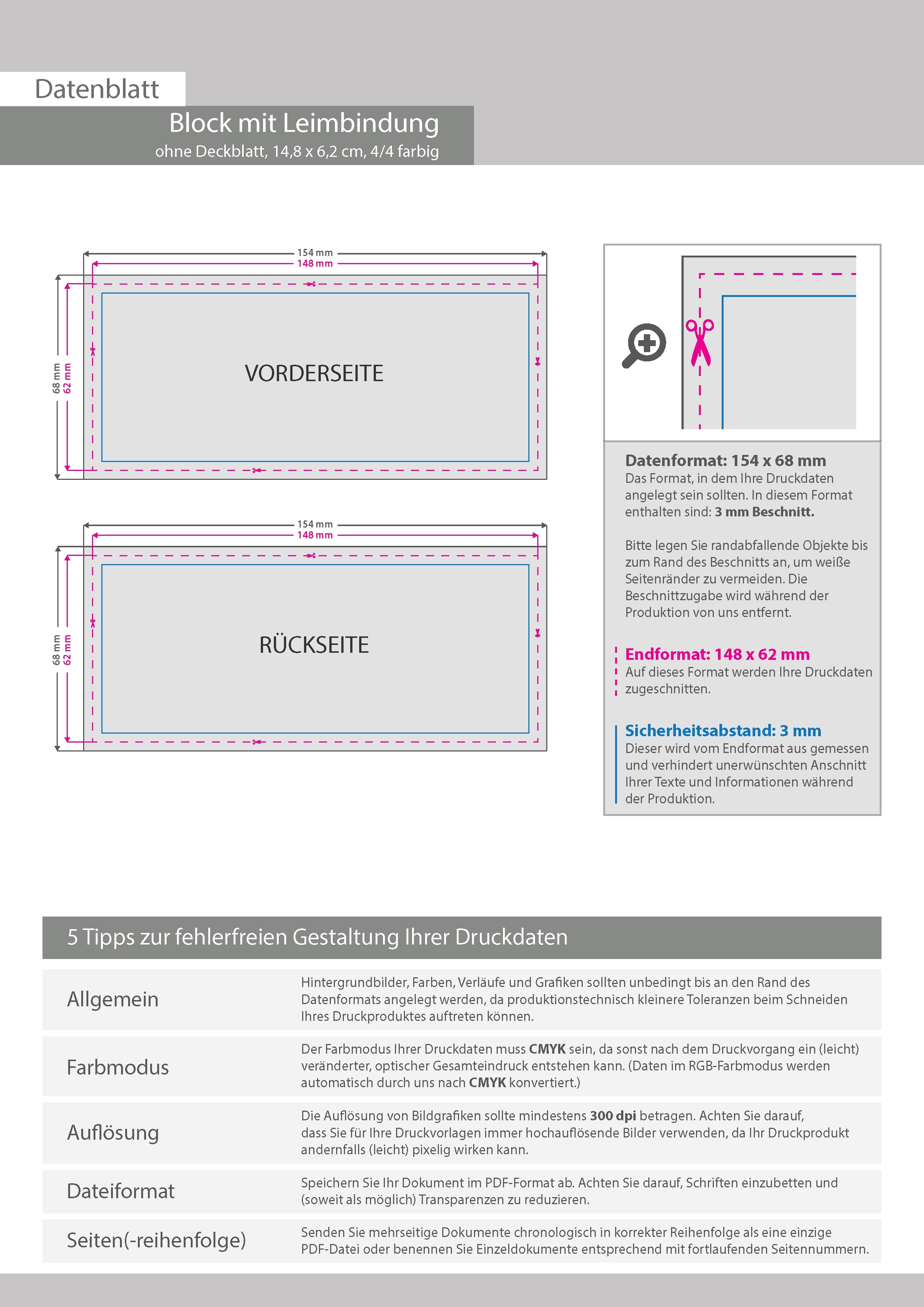 Block mit Leimbindung, 14,8 cm x 6,2 cm, 200 Blatt, 4/4 farbig beidseitig bedruckt