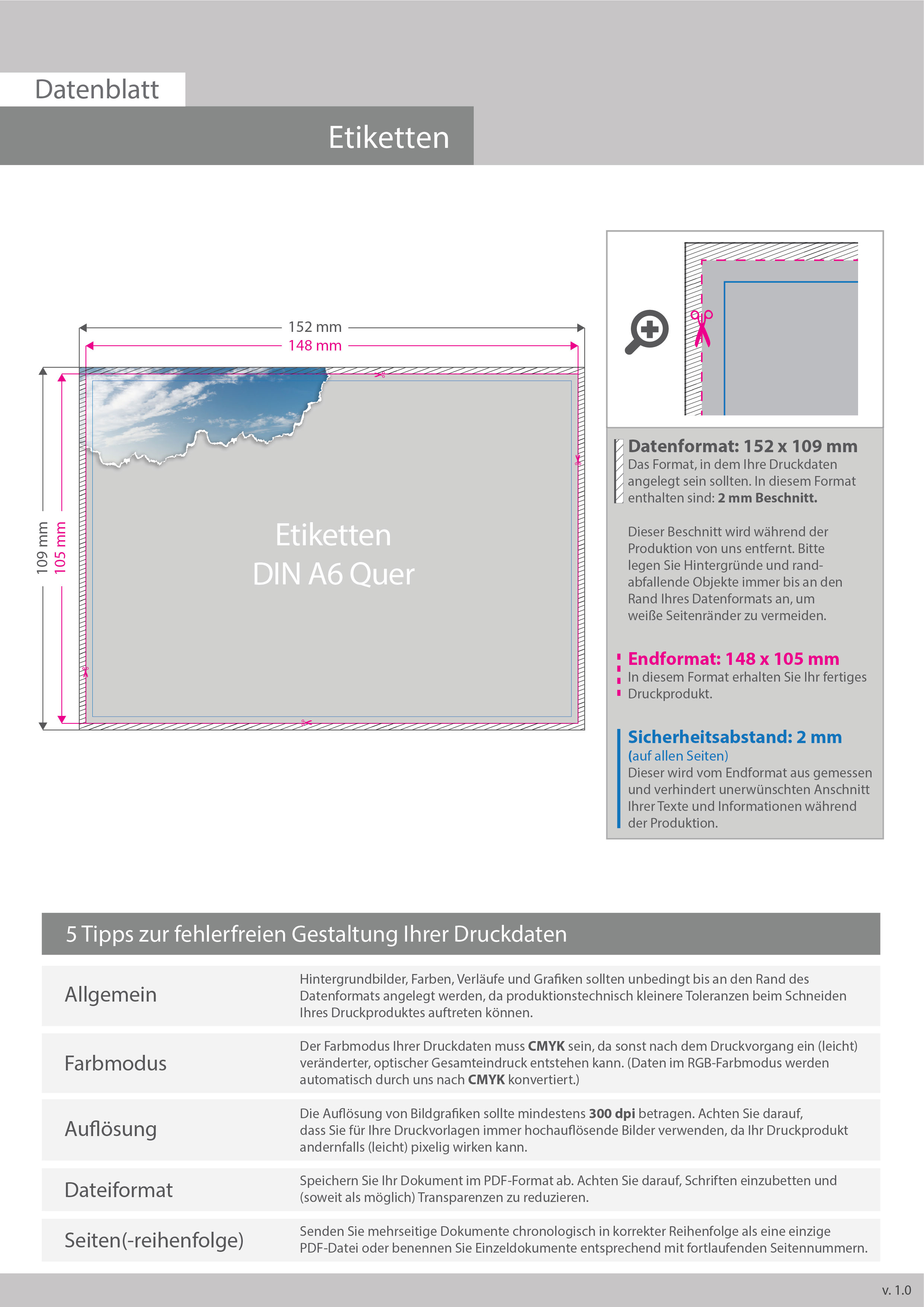 Nassleimetikett DIN A6 quer (14,8 x 10,5 cm), 4/0-farbig bedruckt
