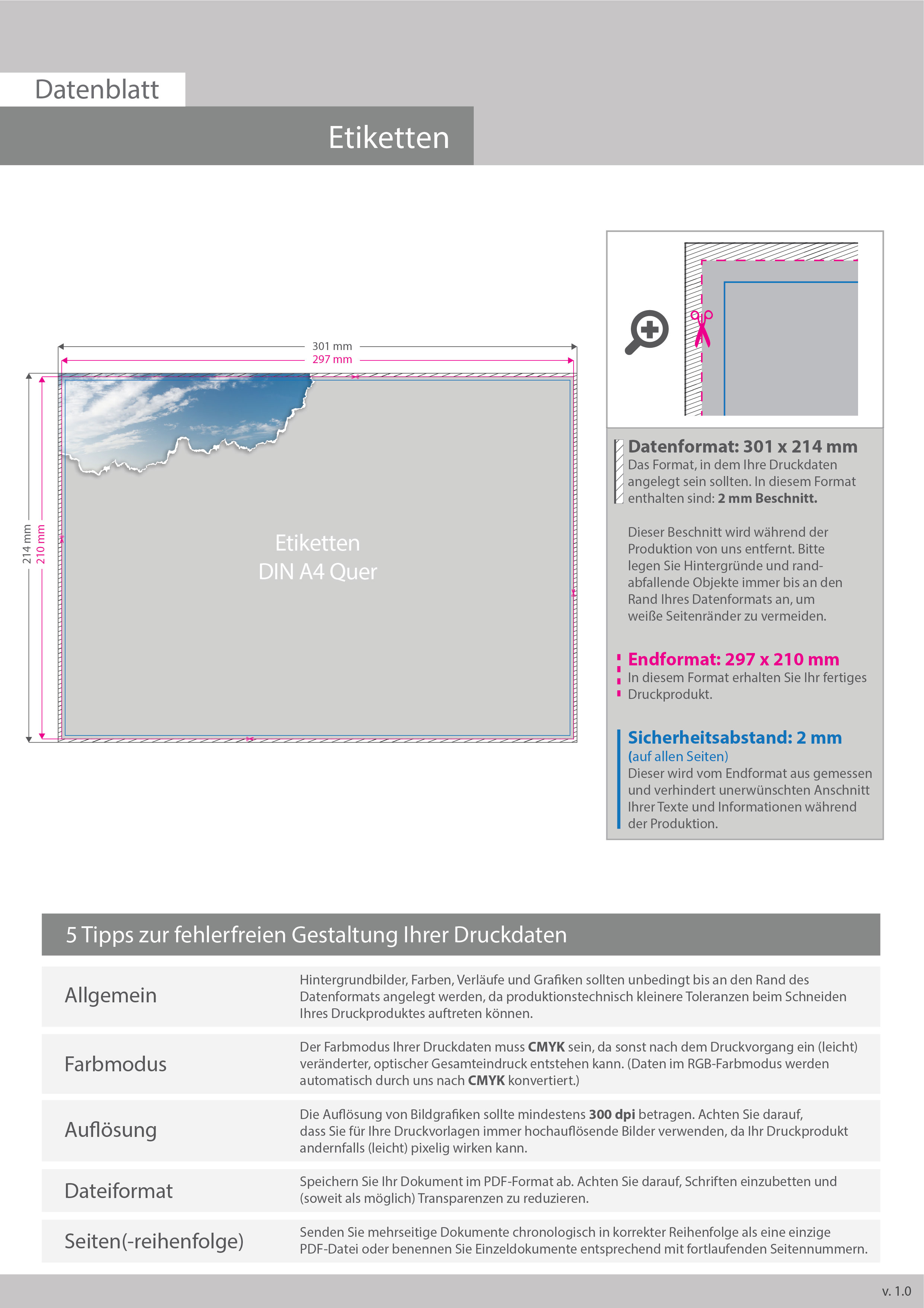 Nassleimetikett DIN A4 quer (29,7 x 21,0 cm), 4/0-farbig bedruckt