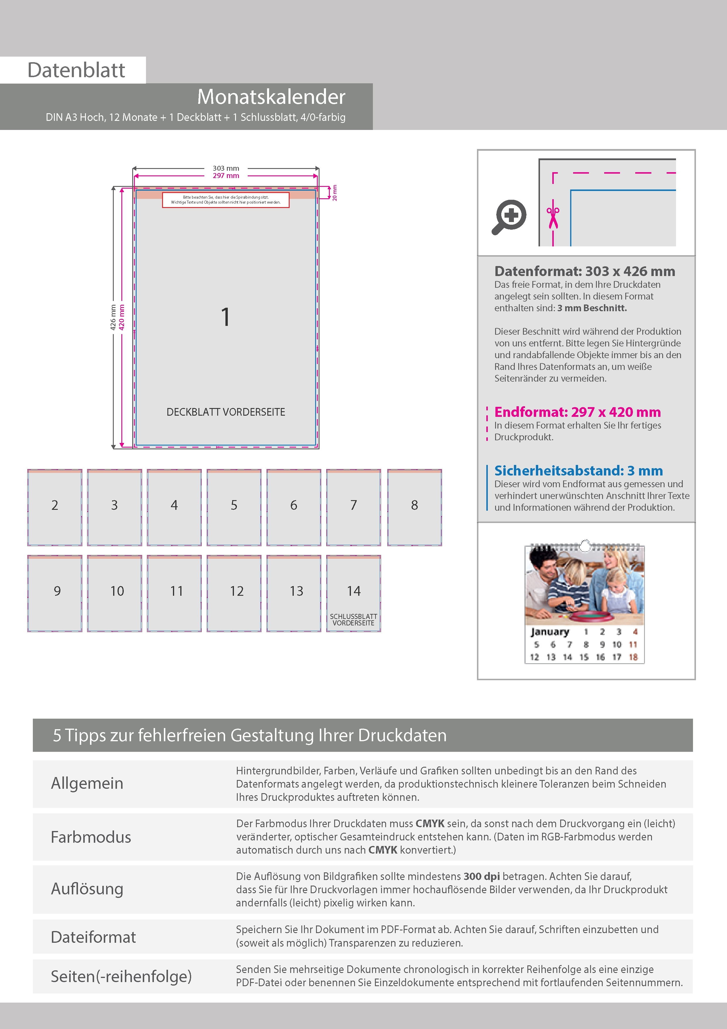 Monatskalender 14 Blatt (12 Monate + 1 Deckblatt + 1 Schlussblatt)