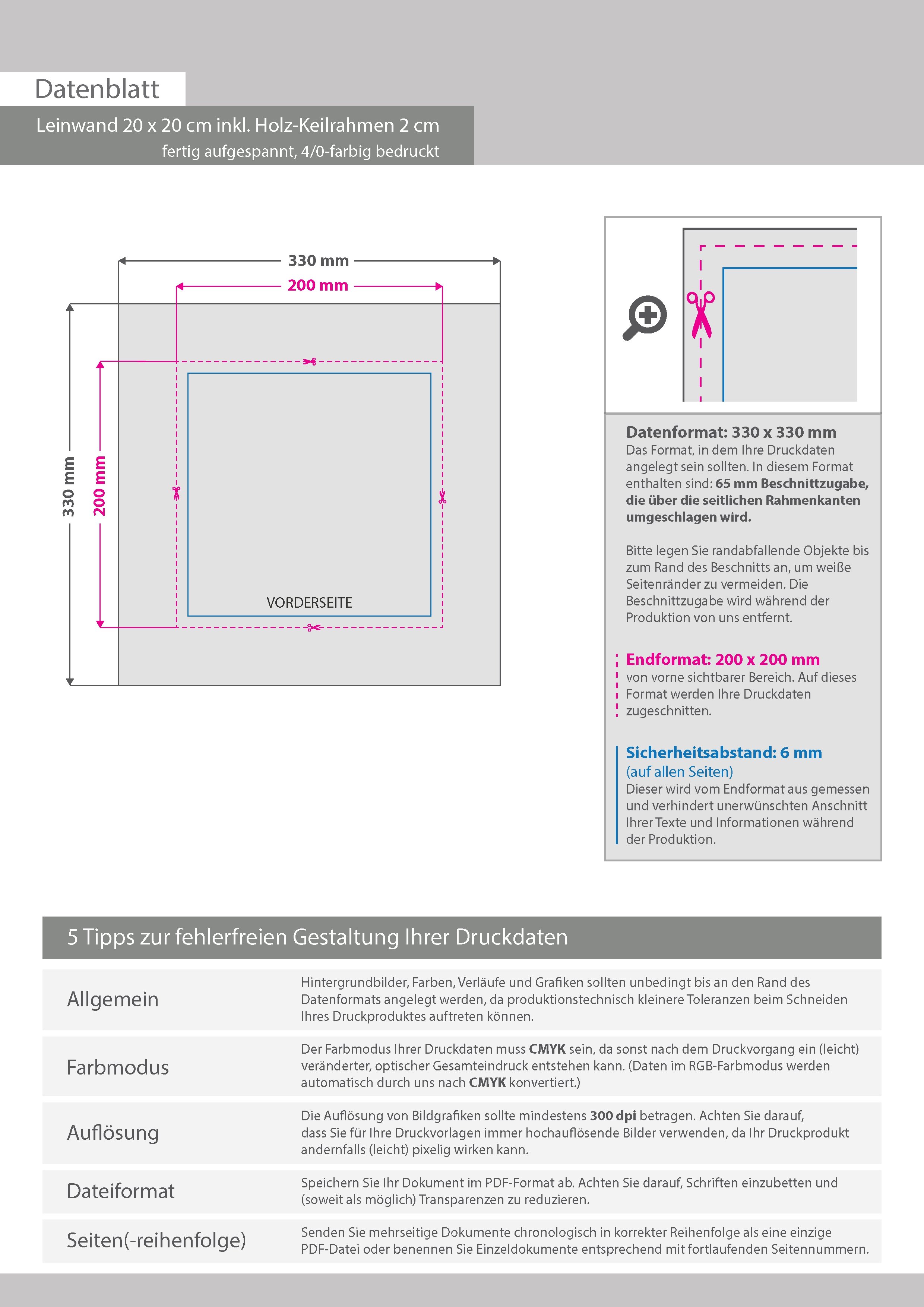 Hochwertige Leinwand 20 x 20 cm inkl. Holz-Keilrahmen 2 cm, fertig aufgespannt, 4/0-farbig bedruckt