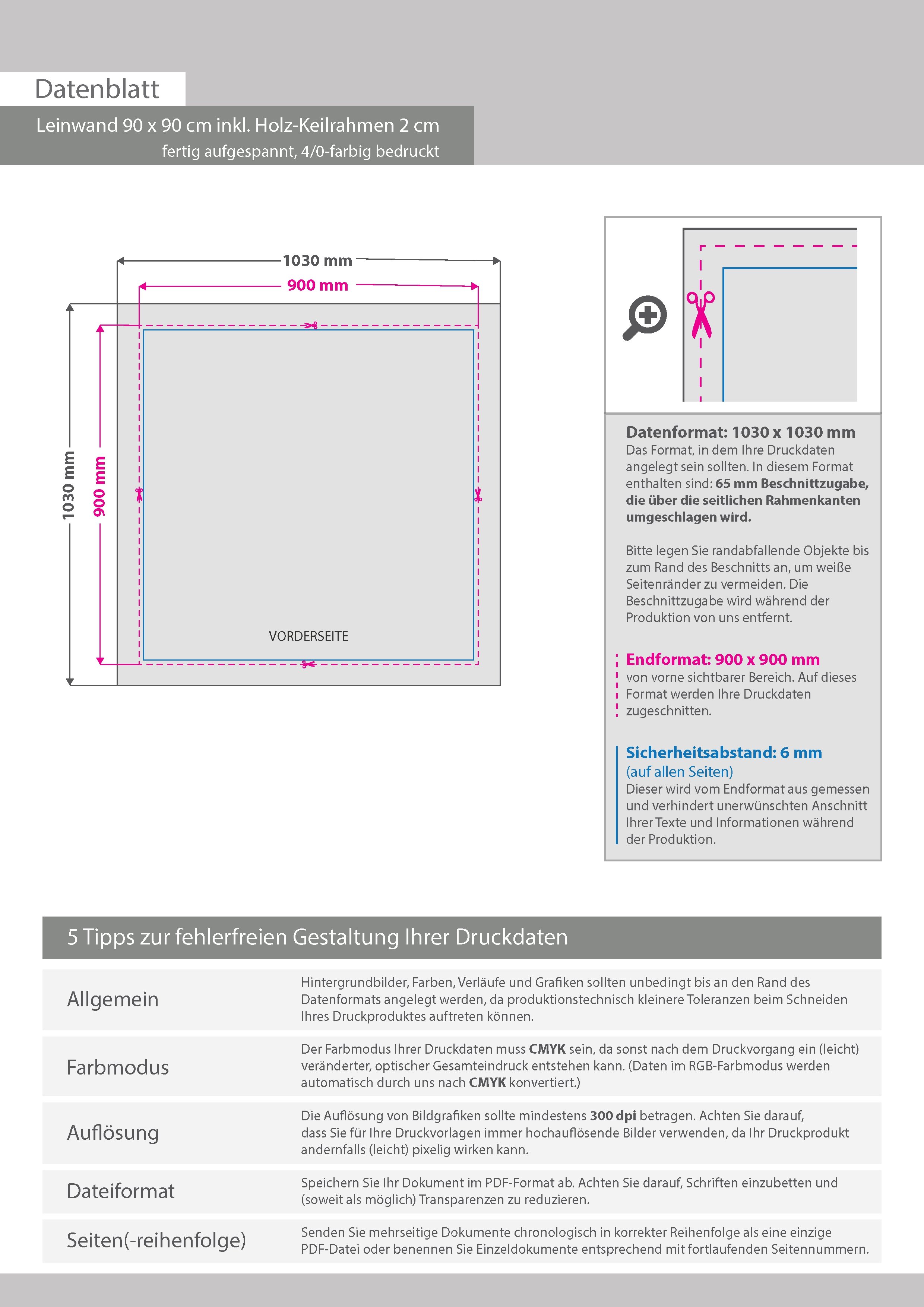 Hochwertige Leinwand 90 x 90 cm inkl. Holz-Keilrahmen 2 cm, fertig aufgespannt, 4/0-farbig bedruckt