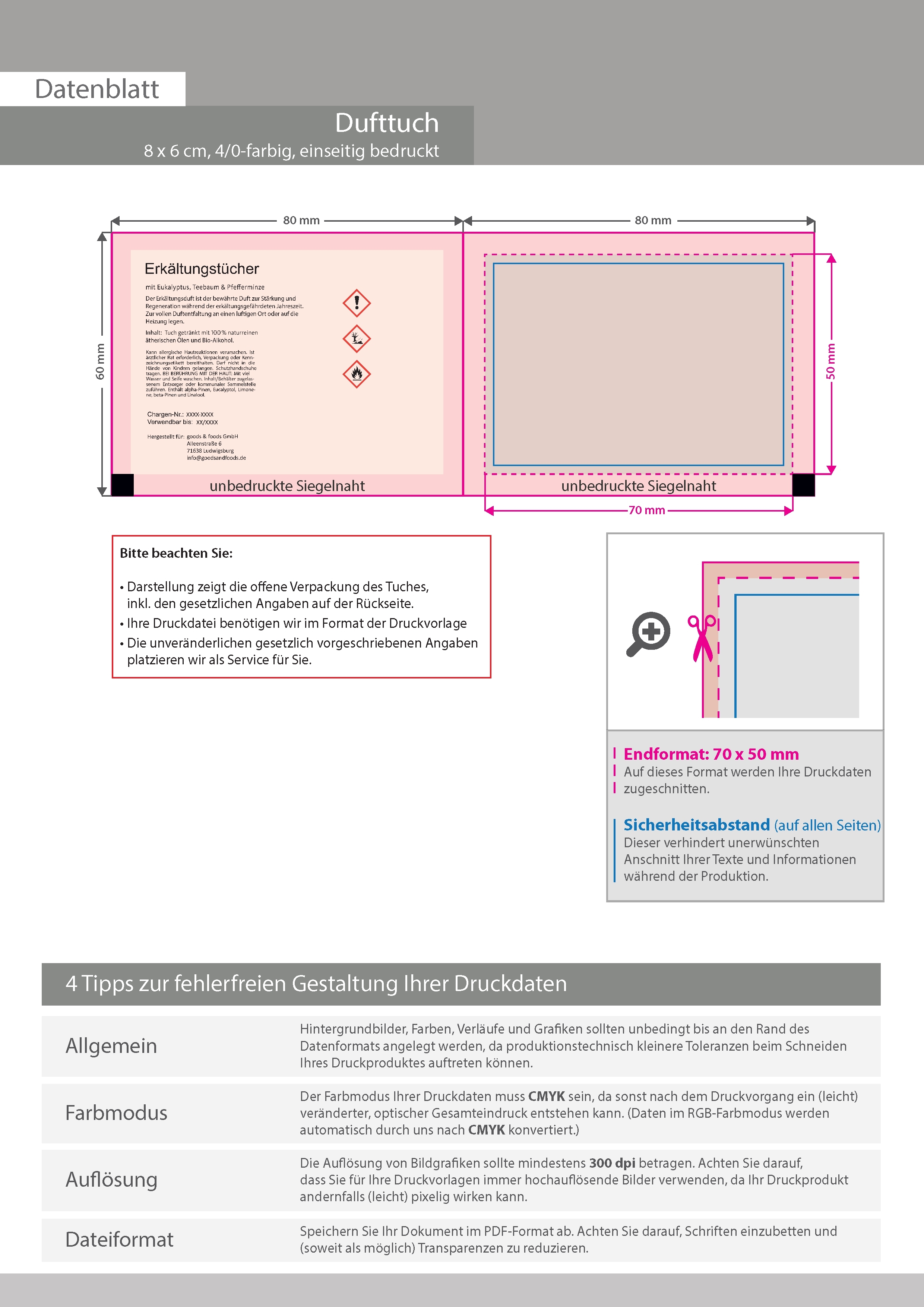 TOPSELLER: Dufttuch mit ätherischen Ölen, 8 x 6 cm, 4/0-farbig einseitig bedruckt